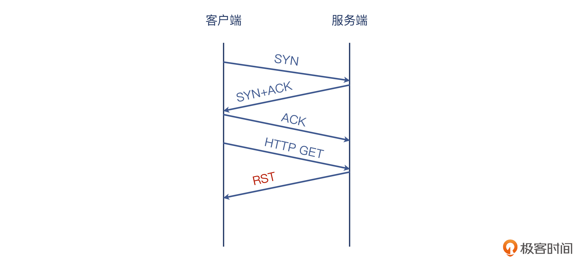 可见,TCP三次握手后,客户端发起了一个HTTP请求,即GET /overview HTTP/1.1,但服务端回复的是TCP RST,怪不得访问失败了。我画了下面这张示意图供你参考: