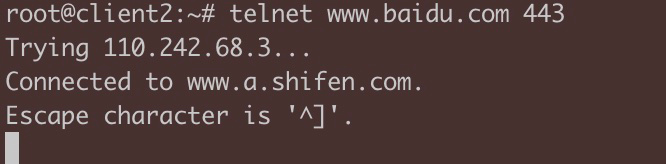 我们再试试在1上发起telnet www.baidu.com 443,果然成功了。