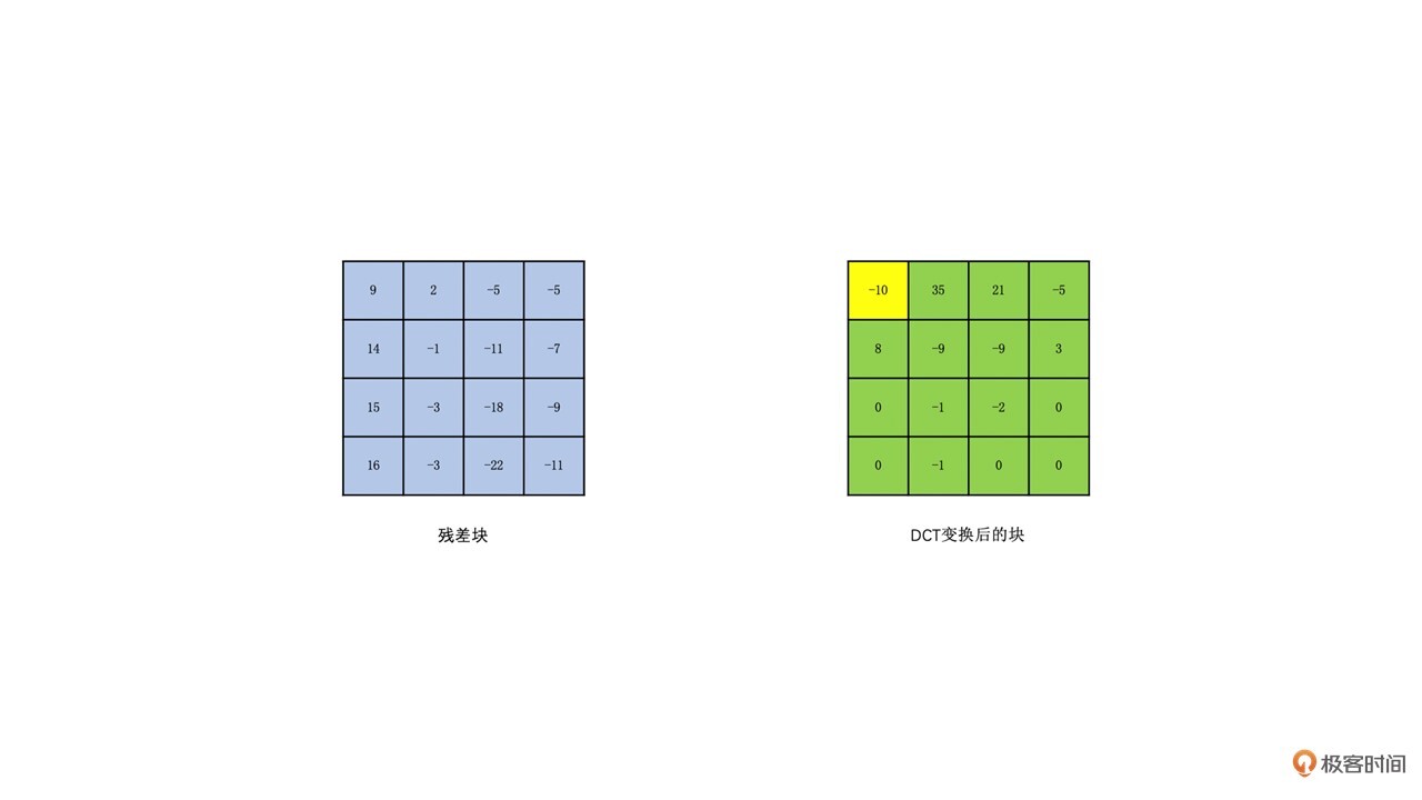 总之,通过预测得到的残差块的像素值相比编码块的像素值,去除了大部分空间冗余信息和时间冗余信息,这样得到的像素值更小。如果把这个残差块做扫描得到的像素串送去做行程编码,是不是相比直接拿编码块的像素串去做编码更有可能得到更大的压缩率?