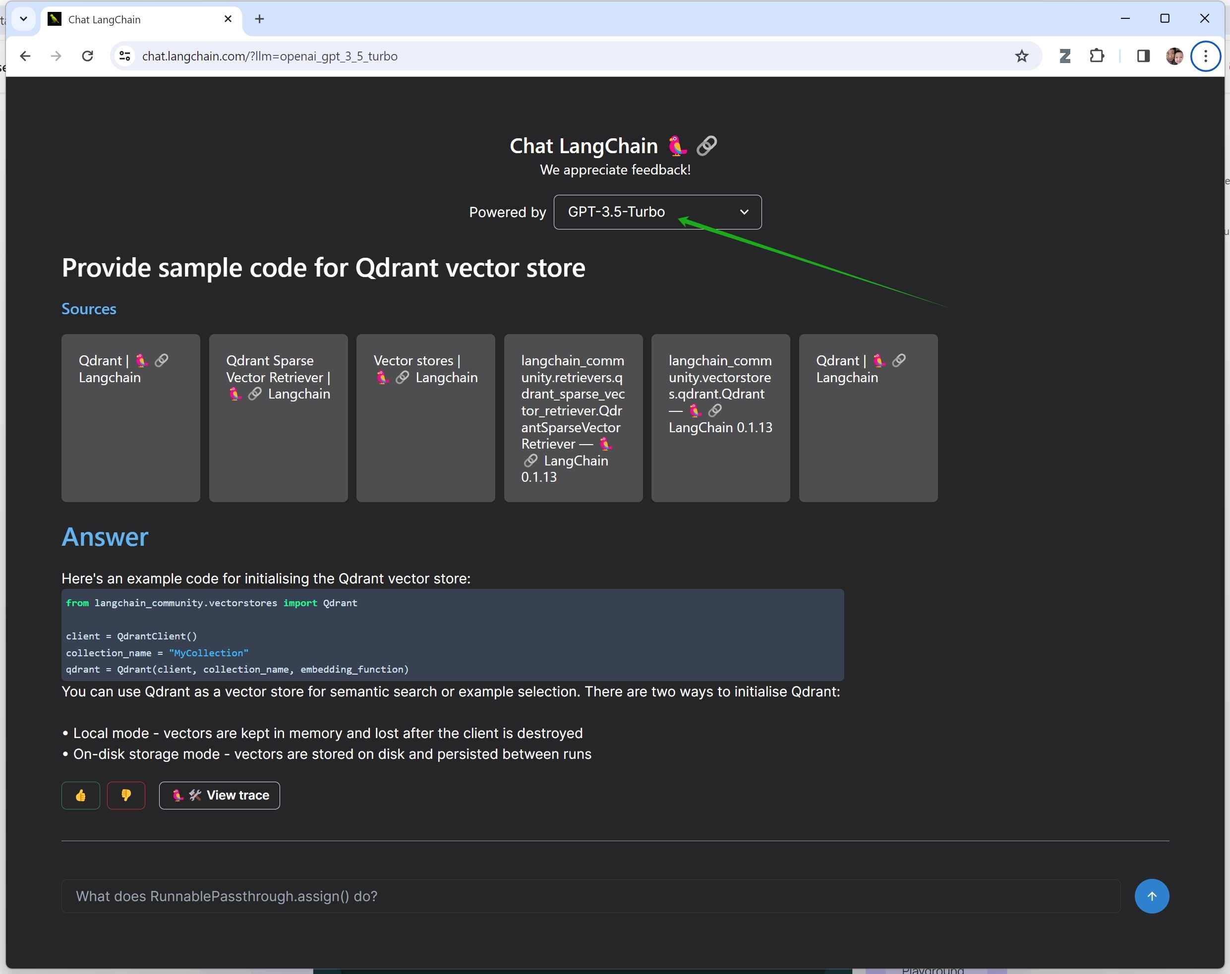 作为一个与各种企业紧密互动的技术人员,我的日常感受也与上面这份商业报告相符,不仅仅是公司内部、外部,都纷纷展开基于大模型的智能文档管理/检索系统。就拿我经常访问的LangChain网站来说,我就发现基于大语言模型的应用程序早已渗透到了网站功能设计之中,比如下面两张图的绿箭头处,所显示的文档检索功能,都是基于大语言模型所开发的。而OpenAI去年11月推出的ChatGPT企业版,已经被很多很多家财富五百强企业所采用,为企业降本,为员工增效。