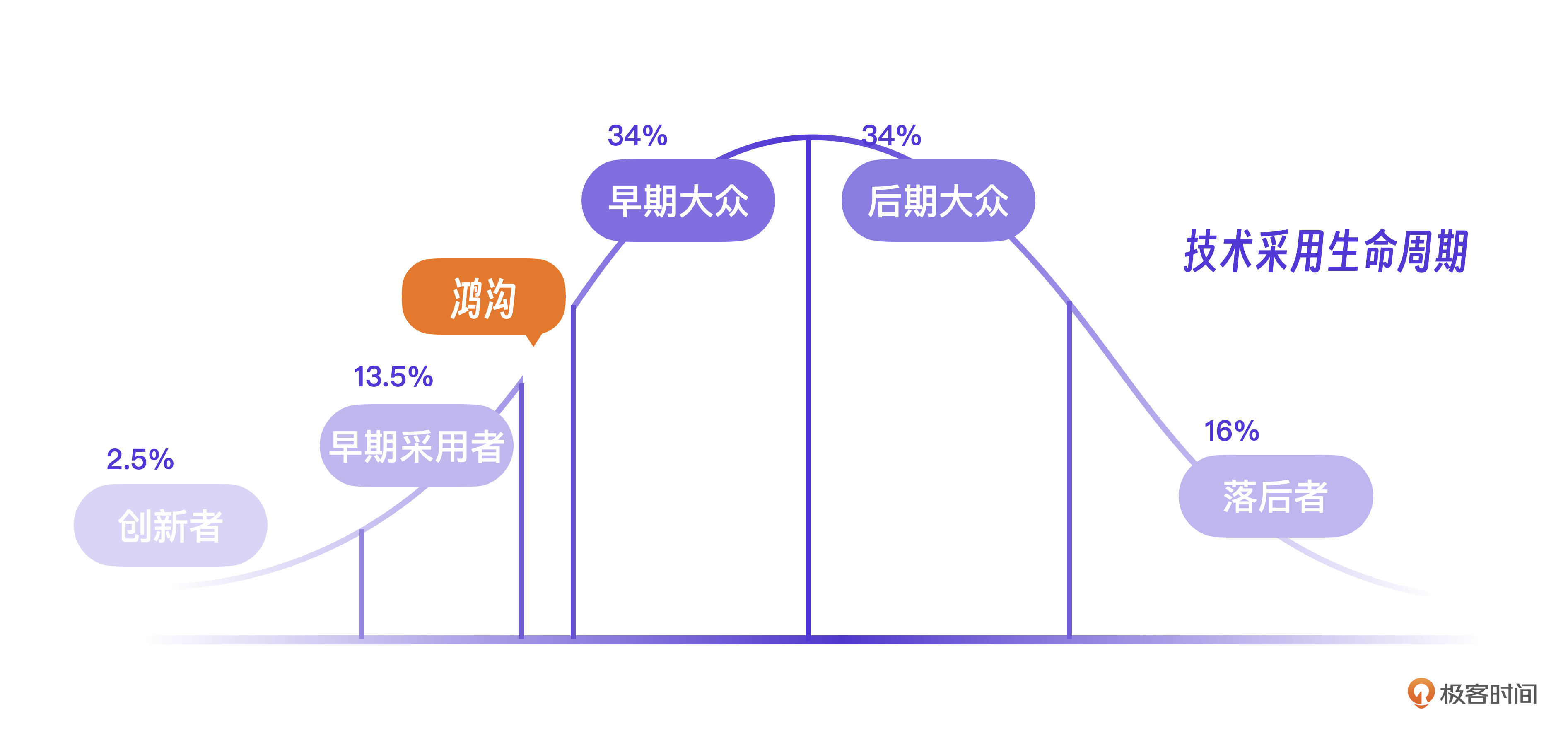 就在我写这篇文章的当下,关于“技术采纳生命周期”曲线这个概念死活想不起来,搜索完全解决不了,但是AI解决起来就很轻松。