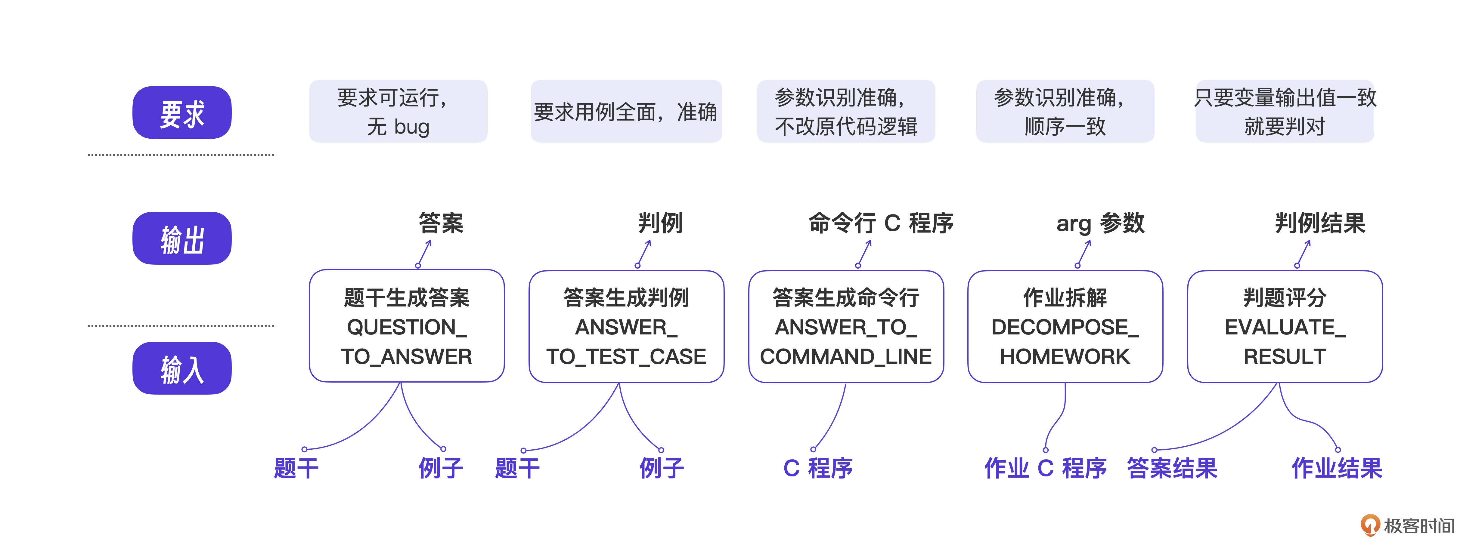 **课程第二部分,是一个教育领域大模型应用开发实战案例。**具体来说,就是帮老师做一个C语言的判题系统,让判作业这件事提升10-20倍的效率。这是我去年接触到的最落地的实战项目,麻雀虽小,五脏俱全。如果你想了解AI业务价值具体怎么落地,学习提示词技术在项目中的实战经验,也想将AI应用和传统应用开发相结合,那它真的非常适合你。