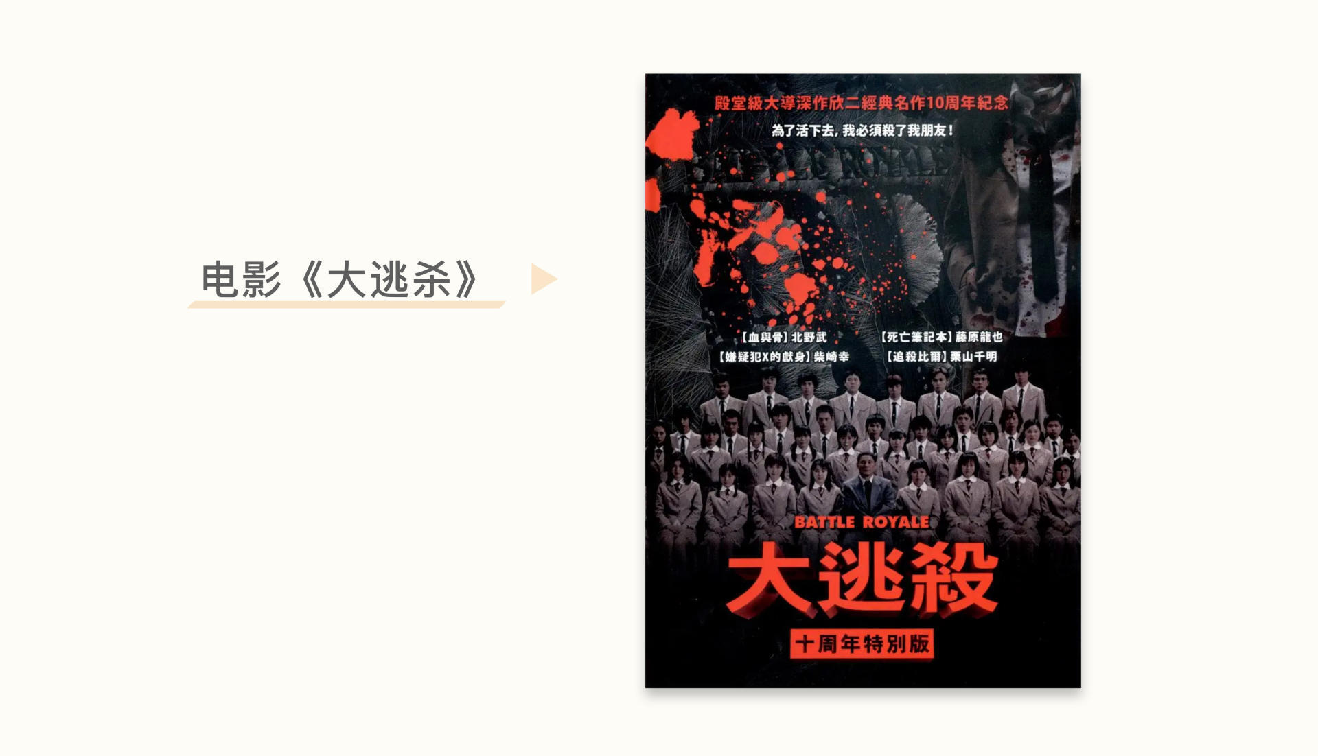 有意思的地方在于,“吃鸡”游戏的核心玩法跟20年前的日本电影《大逃杀》如出一辙。