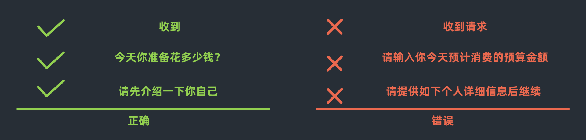 所有界面交互的用语,最重要的一个原则就是讲人话。我们所有的人机互动,最终都是希望能够顺畅自然地完成交互。