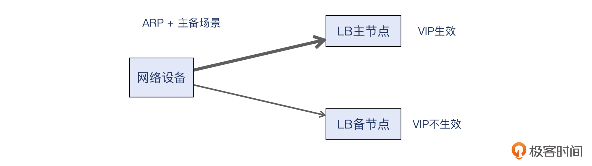 ECMP大部分时候用来增加网络骨干环节的带宽,不过它还有一个重要的使用场景,就是实现多活的负载均衡(LB)。我们可以先看一个传统的一主一备的负载均衡架构: