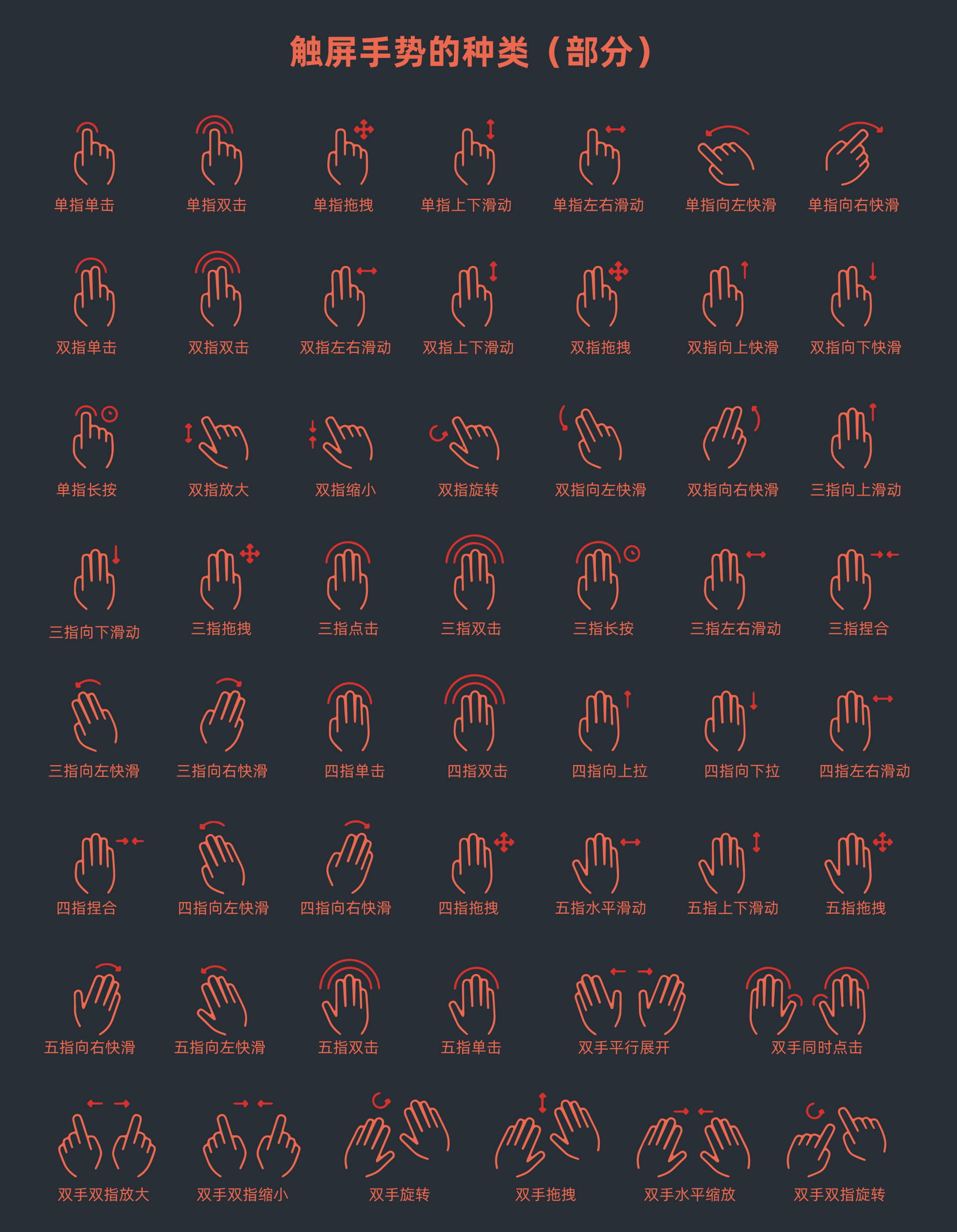 - 在屏幕上接触点越少越易用,也就是说参与交互的手指数量越少越易用。