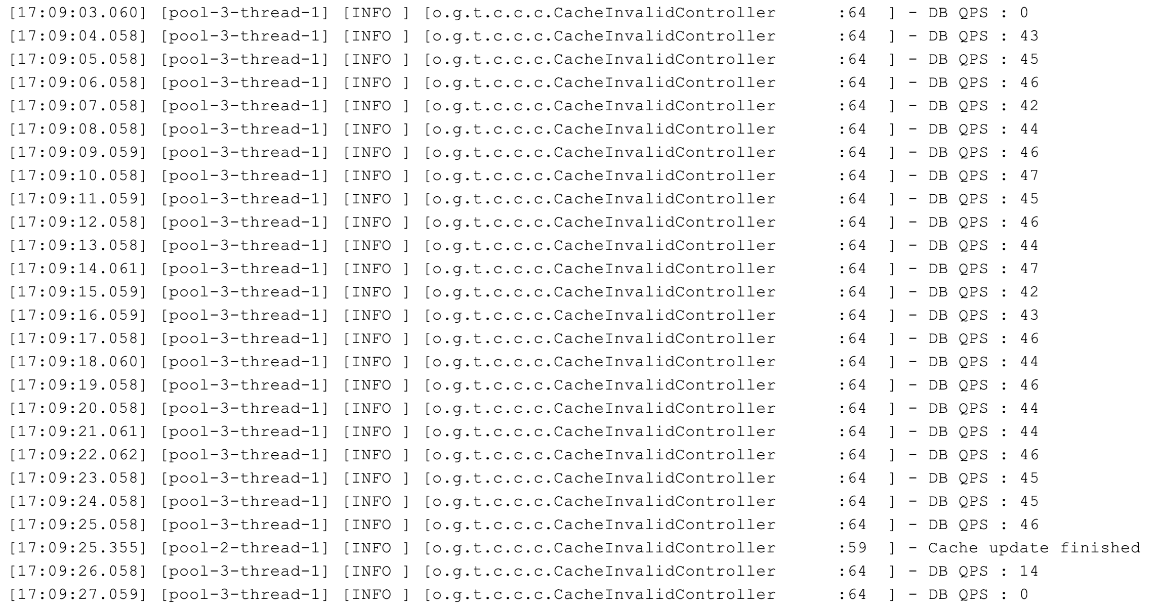 这样修改后,虽然缓存整体更新的耗时在21秒左右,但数据库的压力会比较稳定: