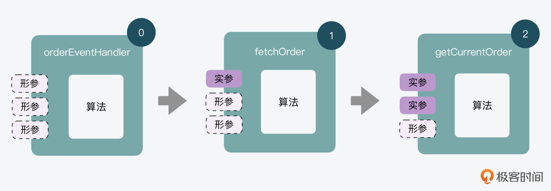 也就是说,我们可以通过orderEventHandler函数,具象出一个专门的fetchOrder函数。通过这种方式,我们就提前预置了已知参数url,减少了后面需要传入的参数数量,同时也增加了代码的可读性。