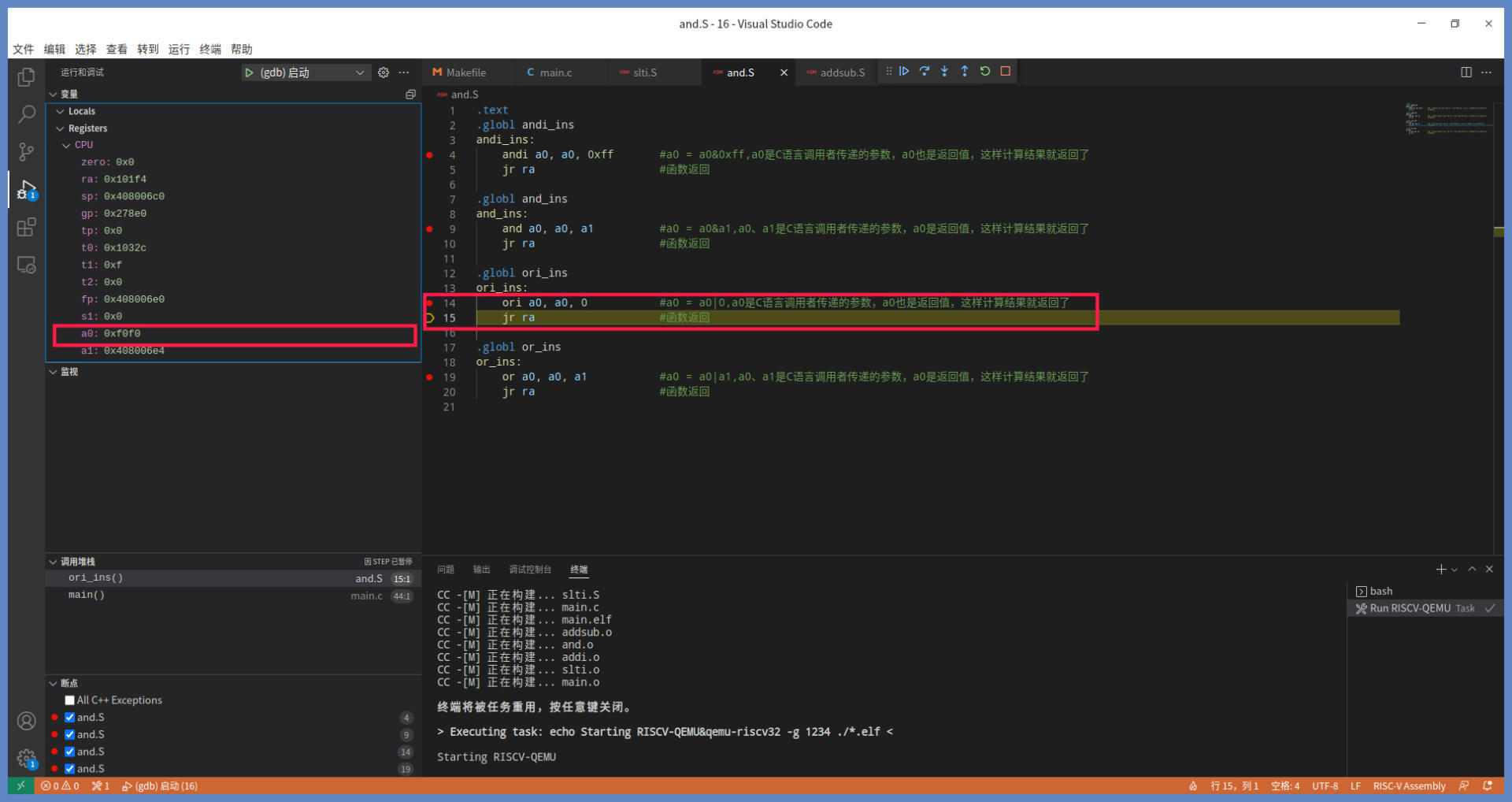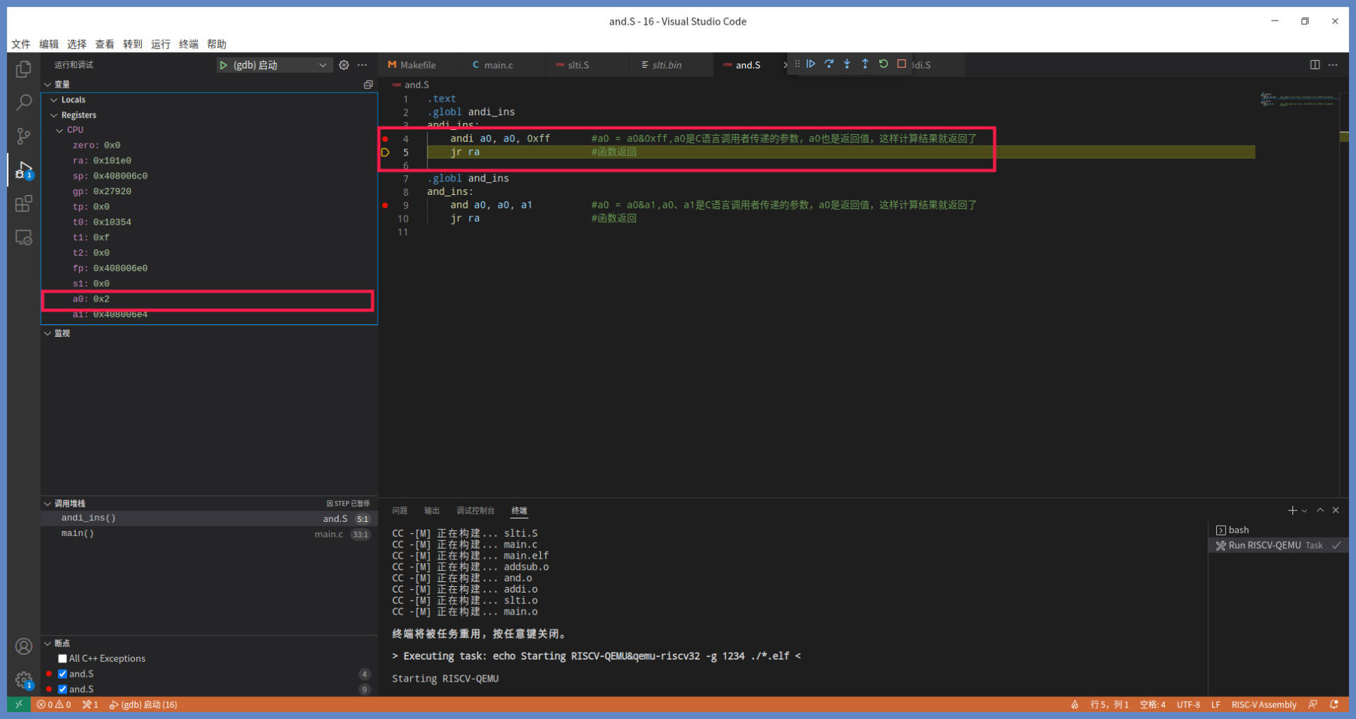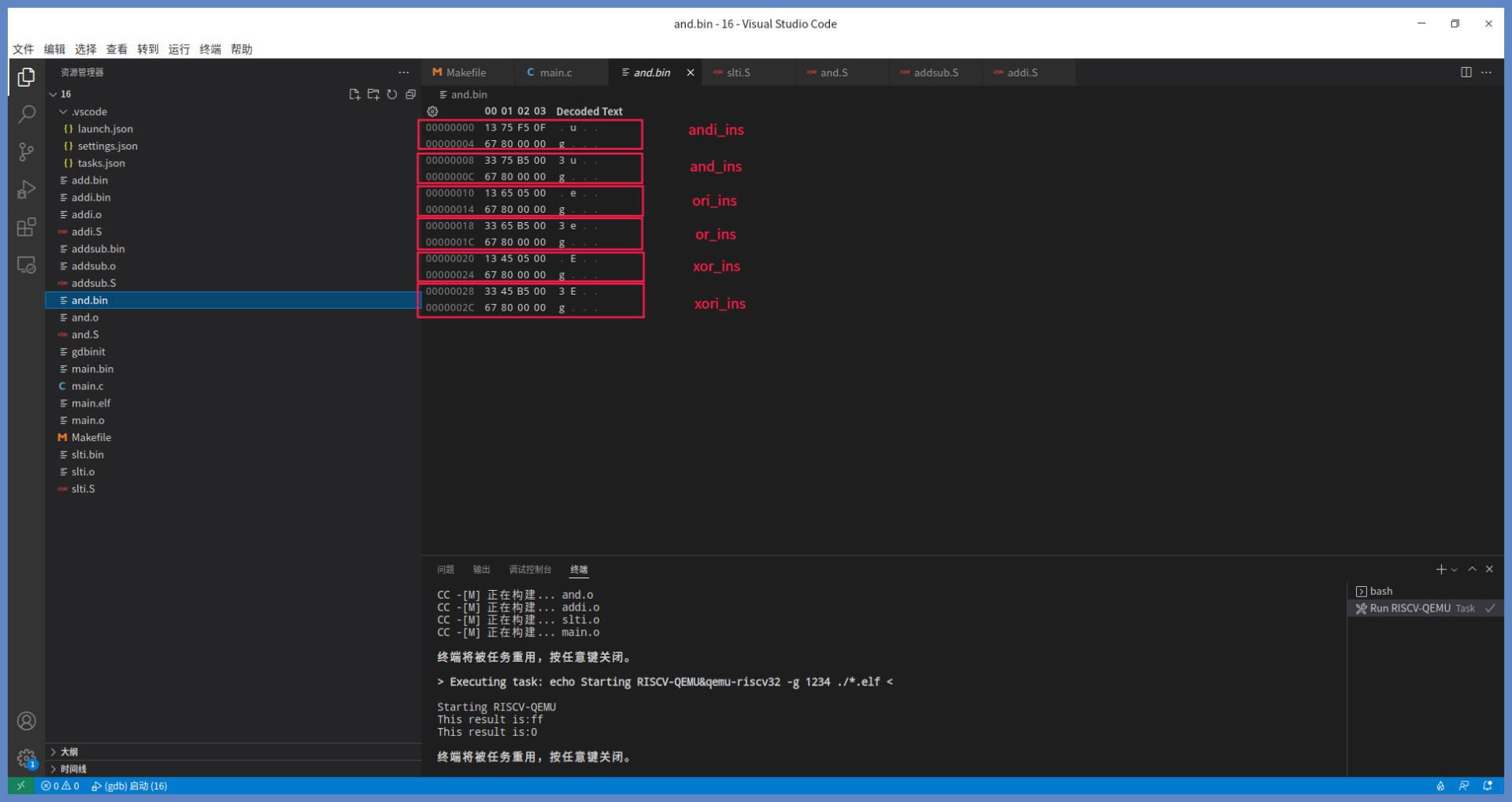 这里我们已经写好了andi_ins与and_ins函数,分别去执行andi和and指令。