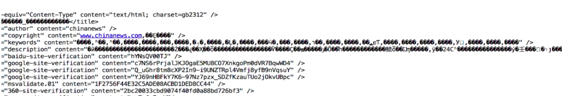 虽然目前大多数网站都使用UTF-8编码,但其实服务器发送过来的HTML文本可能拥有很多编码形式,例如ASCII、GB2312、UTF-8、UTF-16。一些国内的网站就会采用GB2312的编码方式。不过,如果编码的形式与解码的形式不同,可能会出现乱码的情况。