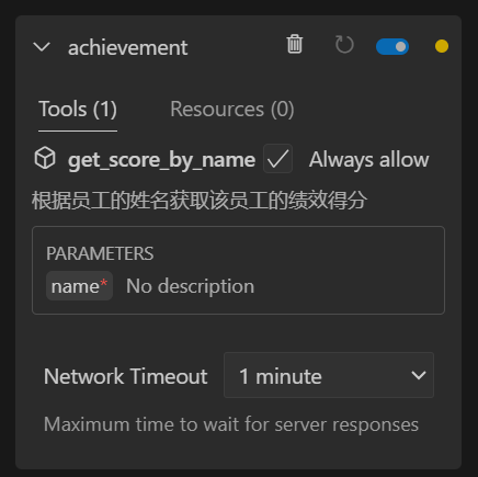 这里请注意,你要把实际代码路径写成你自己的。然后就会显示出我们的 MCP Server 以及工具。