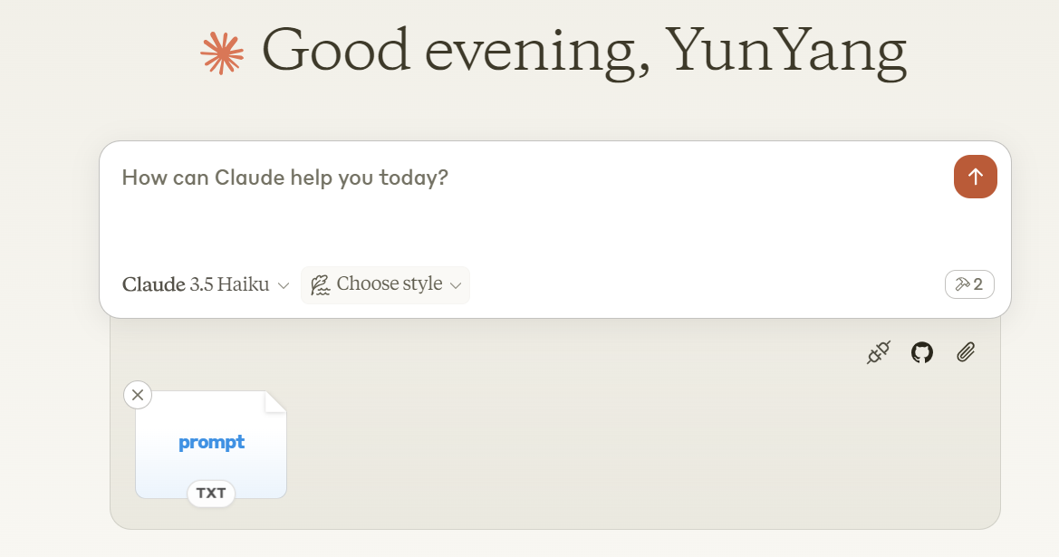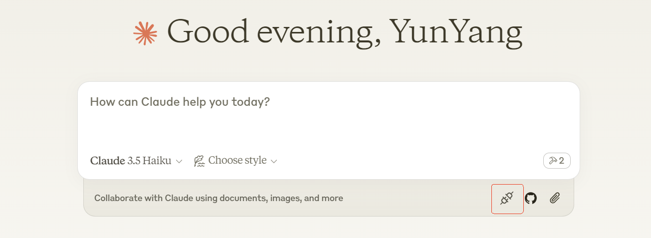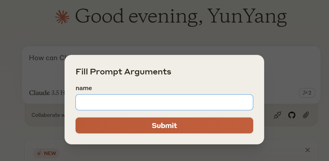 这个功能,也必须用 Claude Desktop 才能测试。我们重启 Claude Desktop,让其重新加载 MCP Server。之后,依然是点击插头按钮,会看到比之前多了一个 prompt。