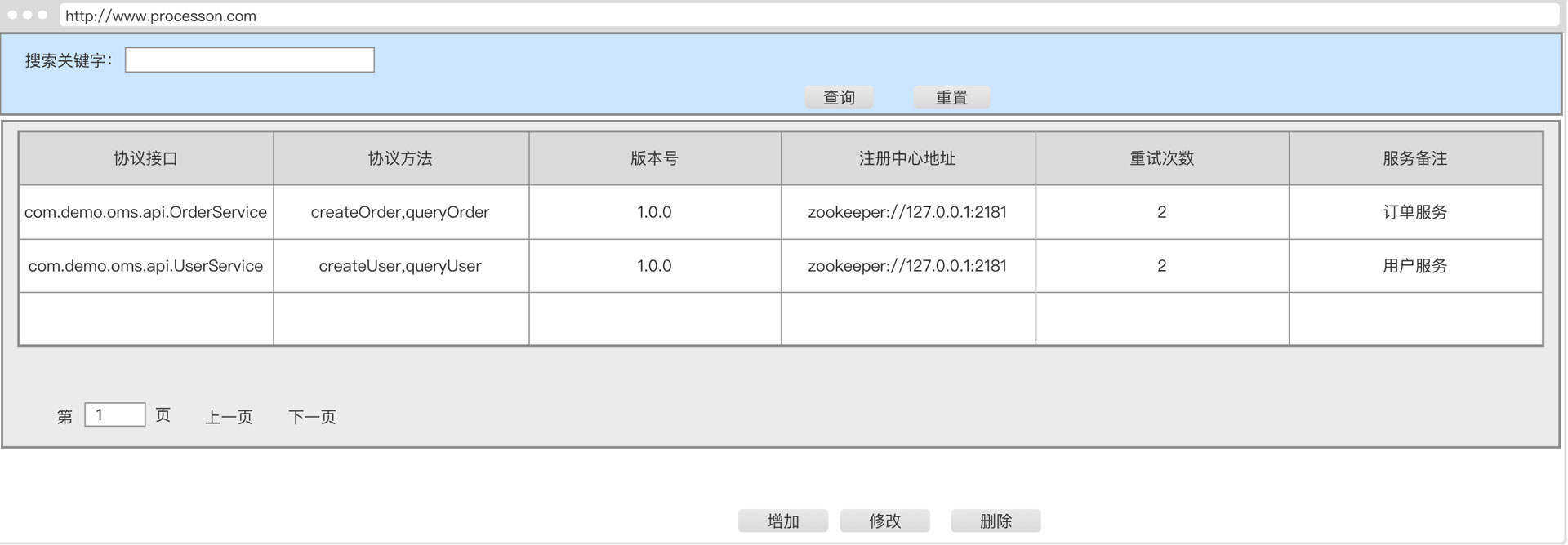 我们先来看一下微服务调用协议的配置,设计的原型界面如下图所示: