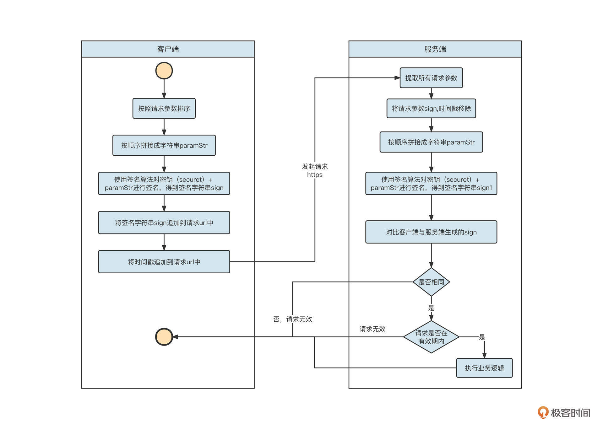 先说签名验证。保证请求的安全是系统设计需要优先考虑的。业界有一种非常经典的通信安全校验机制:验证签名。
