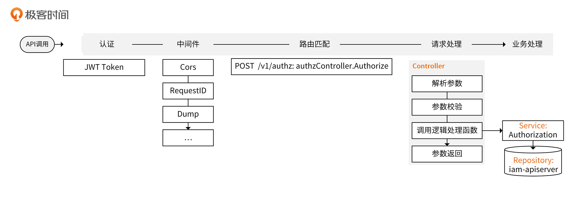iam-authz-server的请求处理流程也是清晰、规范的,具体流程如下图所示: