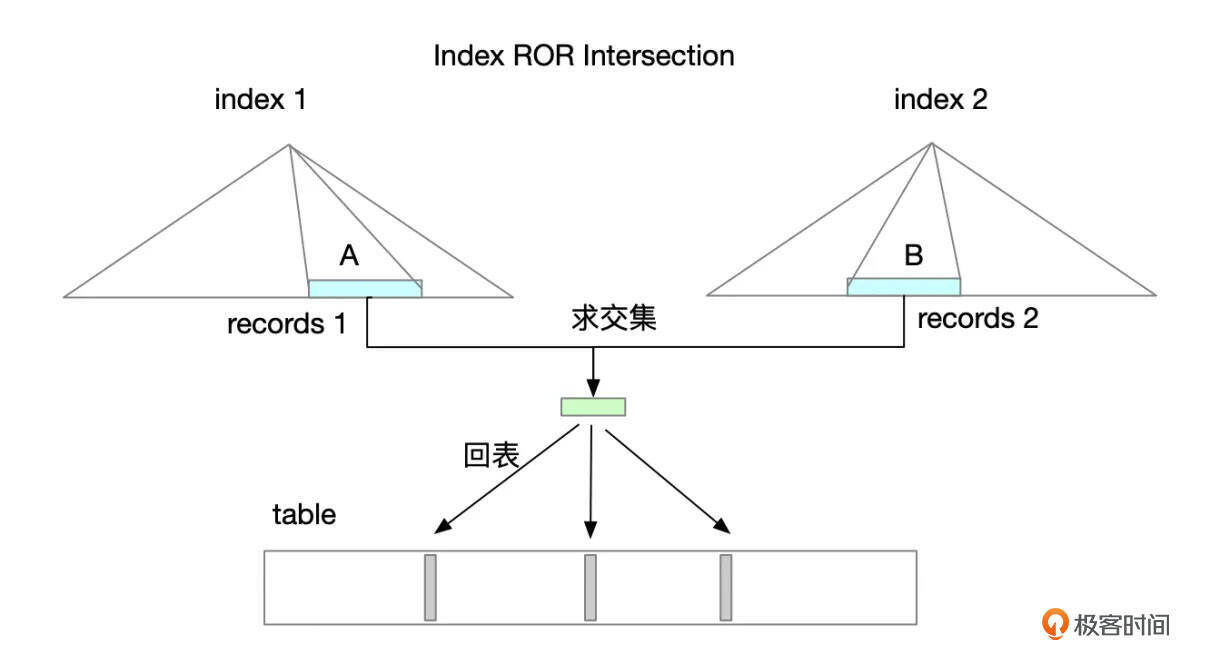 按索引条件读取索引记录 对多个索引的记录合并,去重。 回表查询数据
