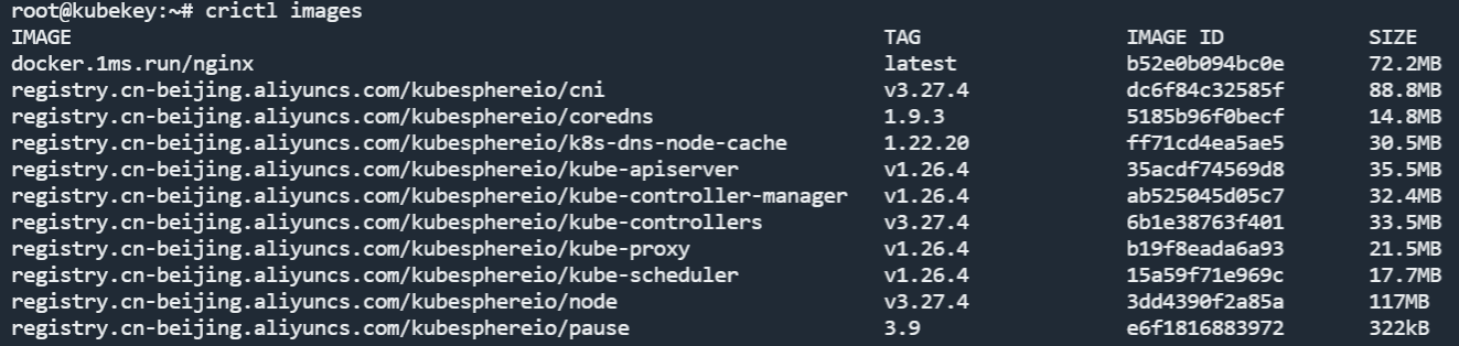 使用 crictl images 命令可以看到当前服务器上的全部镜像。