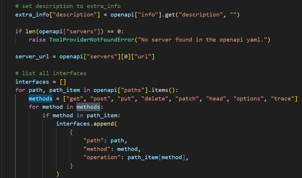 OK,了解了 OpenAPI 的基本结构后,我们看一下 Dify 解析 OpenAPI 结构的代码是怎么写的。