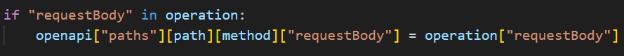 但接下来 Dify 做了如下代码所示的操作,其尝试从 Swagger 中提取 requestBody 并赋值到 OpenAPI 的 requestBody。