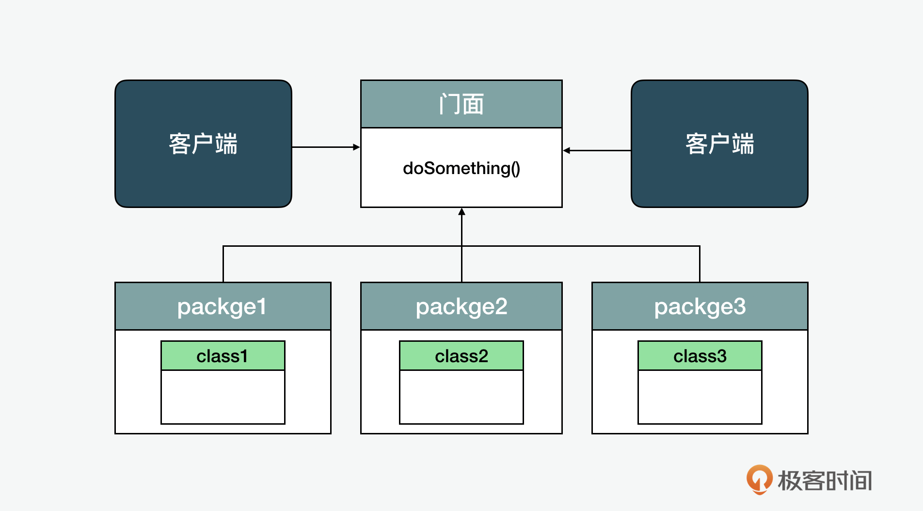 门面模式(facade)是一种经常可以在jQuery等JavaScript库中看到的结构,它的特点是把很多的解决复杂的兼容性问题的实现隐藏在背后,只通过“门面”将对外的接口抽象提供给使用者。