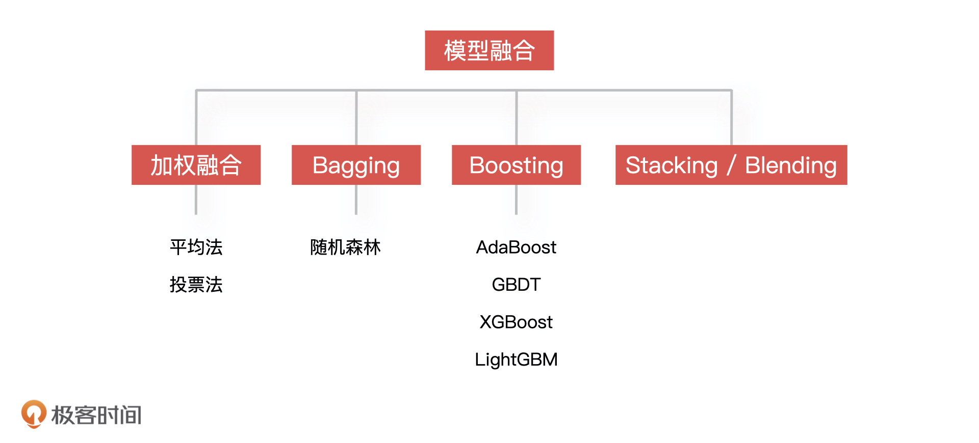 模型融合环节主要是通过多个模型的组合来改善整体的表现。模型融合有许多方法,简单的有加权平均和投票法,复杂的有 Bagging 和 Bosting。作为产品经理,我们要知道,模型融合虽然可以提升模型的准确率,但也需要均衡开发成本来综合考虑。