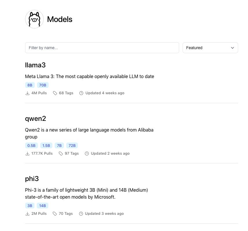 下面是Ollama的模型仓库截图,你可以随时切换模型,用 pull 命令就能下载模型。