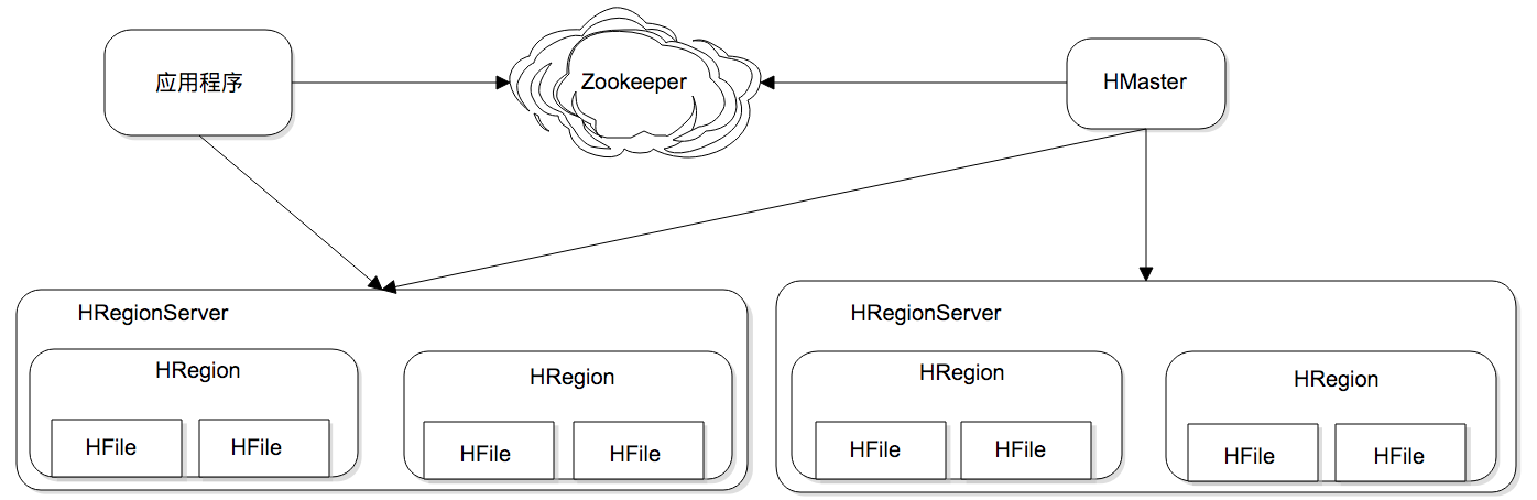 每个HRegion中存储一段Key值区间[key1, key2)的数据,所有HRegion的信息,包括存储的Key值区间、所在HRegionServer地址、访问端口号等,都记录在HMaster服务器上。为了保证HMaster的高可用,HBase会启动多个HMaster,并通过ZooKeeper选举出一个主服务器。
