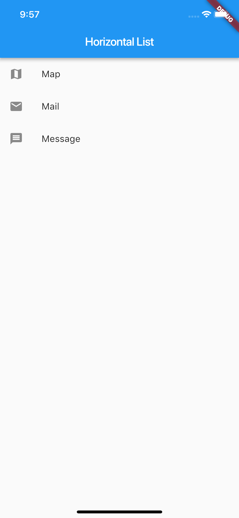 在这个例子中,我们一次性创建了6个子Widget。但从图2的运行效果可以看到,由于屏幕的宽高有限,同一时间用户只能看到3个Widget。也就是说,是否一次性提前构建出所有要展示的子Widget,与用户而言并没有什么视觉上的差异。