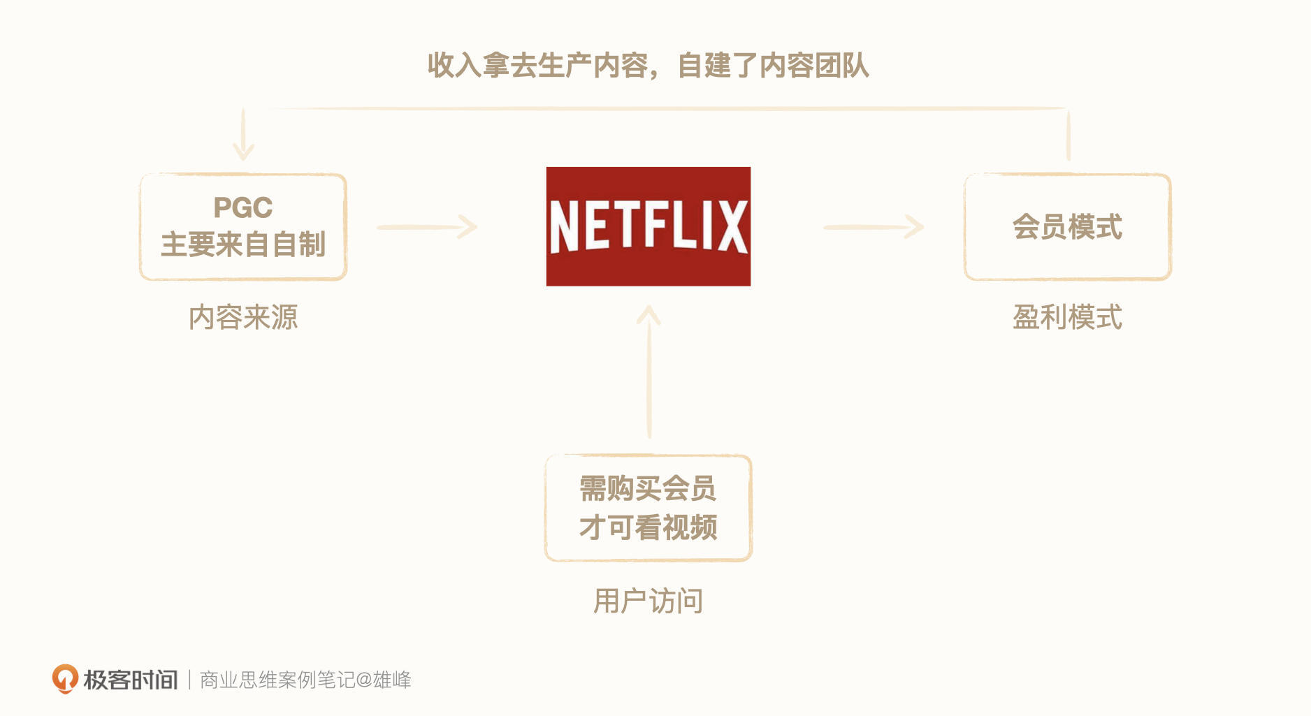 因此,奈飞开始了自制PGC(Professional Generated Content,自制视频)模式,降低采购成本,同时提升独家内容对用户的吸引力。这种模式下,所有的盈利均来自会员费,没有免费内容,必须付费才可以看内容。
