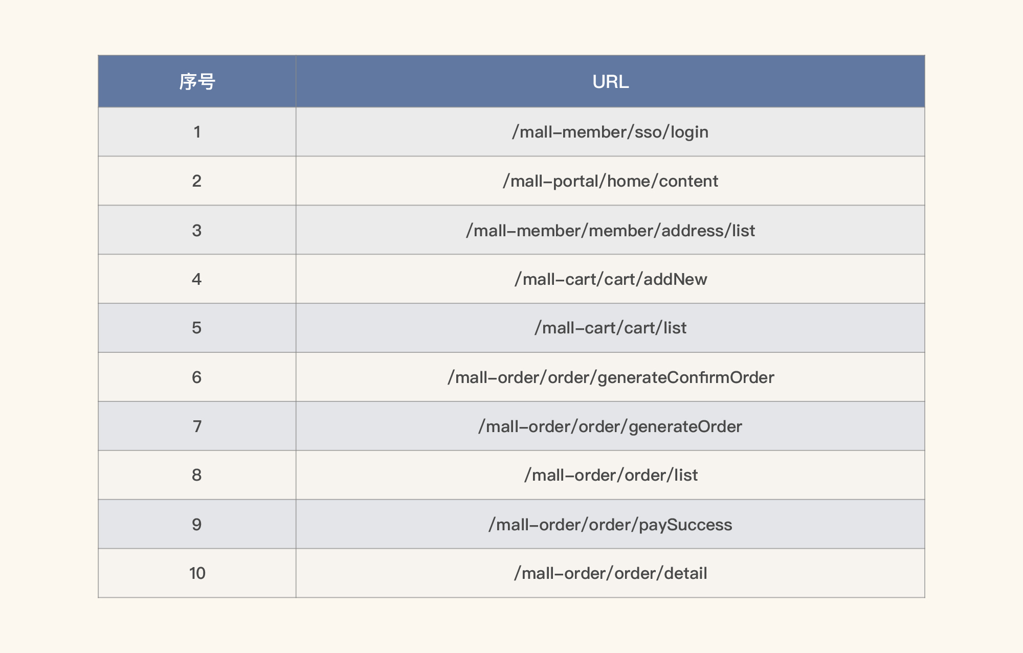 在上面的接口得到业务模型之后,我们就可以根据接口的量级梳理业务逻辑,以便更真实地模拟生产业务场景。其实在上面的步骤中,我们已经按顺序做了排列,你可以看一下前面的表格。