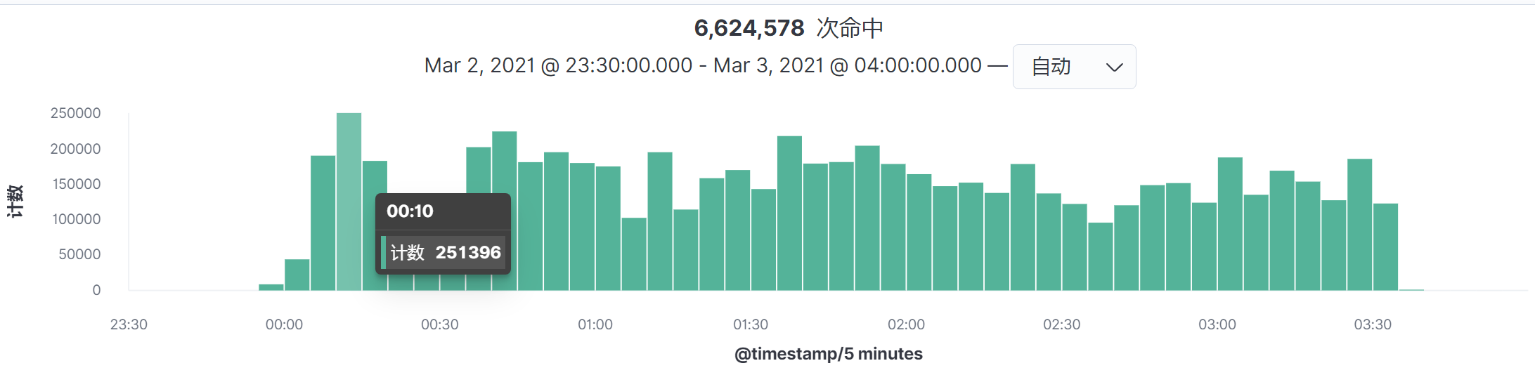 通过主面图中的Timestamp,可以看到是时间间隔是5分钟,我们选择最高请求的时间段,点进去。