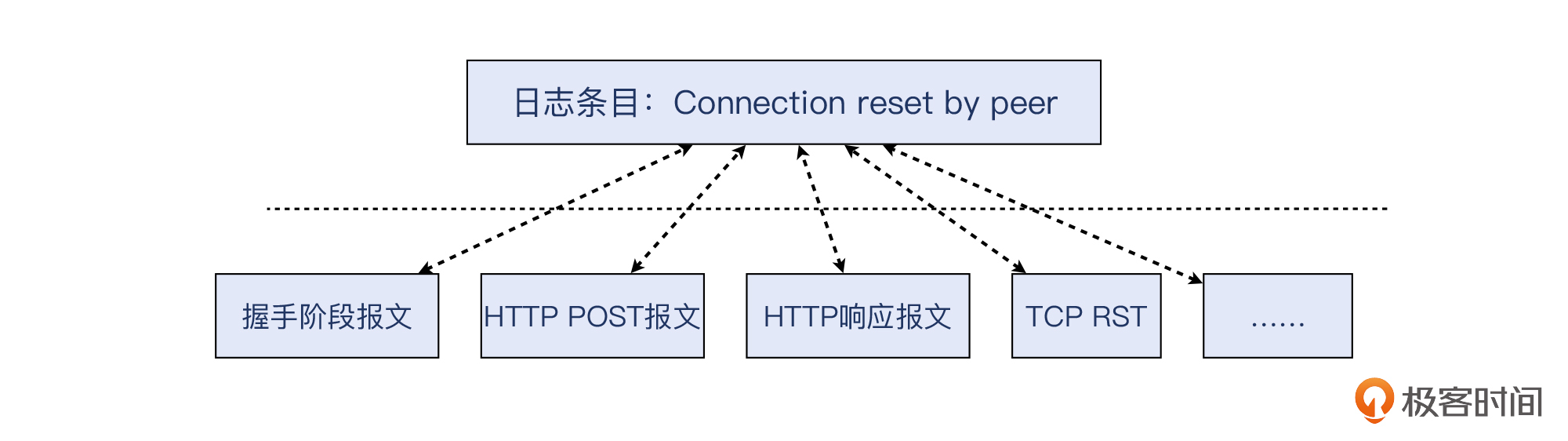 首先,你需要理解下connection reset by peer的含义。熟悉TCP的话,你应该会想到这大概是对端(peer)回复了TCP RST(也就是这里的reset),终止了一次TCP连接。其实,这也是我们做网络排查的第一个要点:把应用层的信息,“翻译”成传输层和网络层的信息。