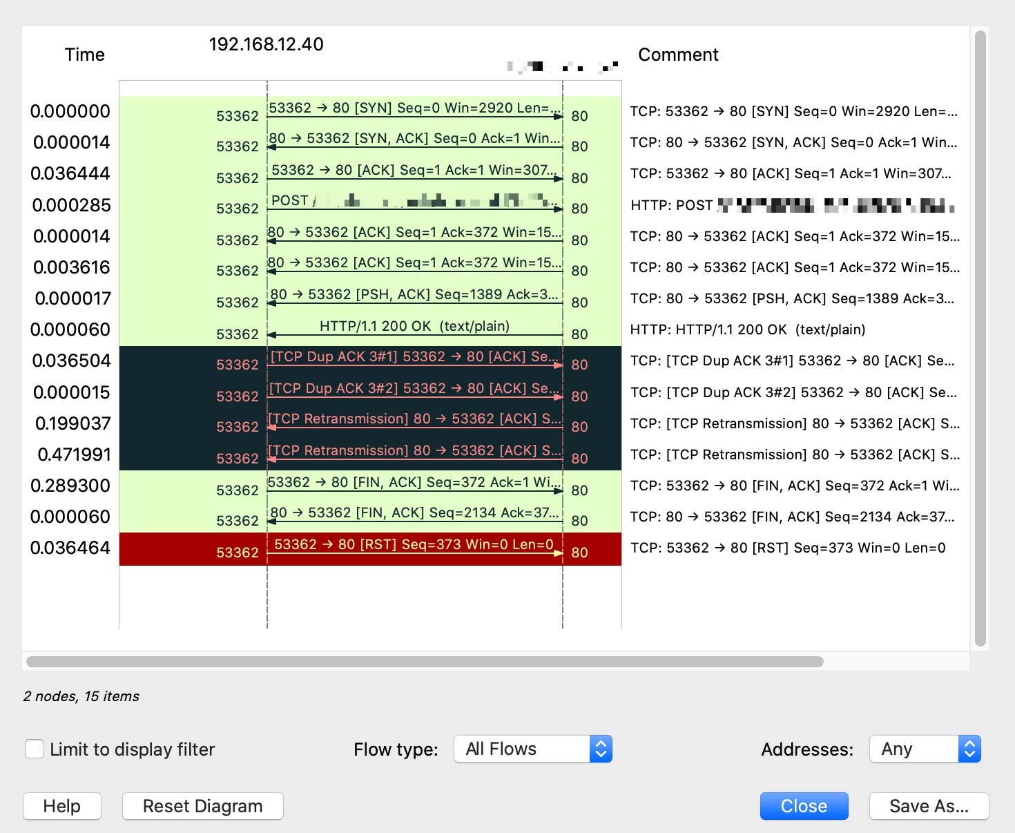 - 借助 Wireshark的Flow graph,我们可以更加清晰地看到两端报文的流动过程,这对我们推导问题提供了便利。