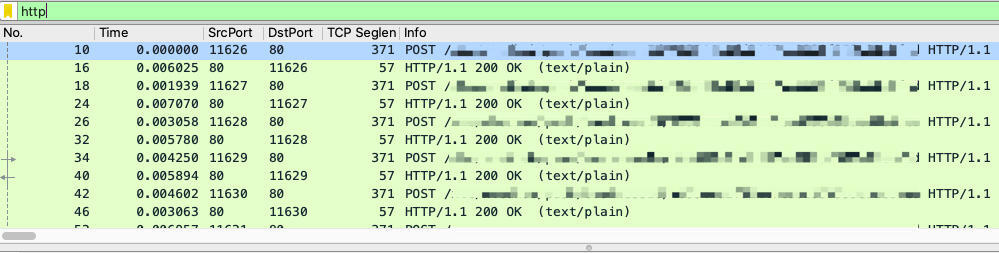 考虑到压测的问题是关于HTTP的,我们需要查看一下HTTP事务的报文。这里只需要输入过滤器http就可以了: