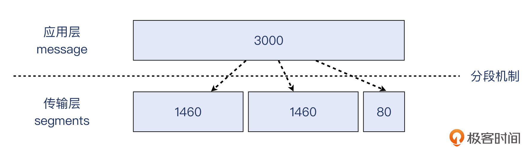 在TCP这一层,分段的对象是应用层发给TCP的消息体(message)。比如应用给TCP协议栈发送了3000字节的消息,那么TCP发现这个消息超过了MSS(常见值为1460),就必须要进行分段,比如可能分成1460,1460,80这三个TCP段。
