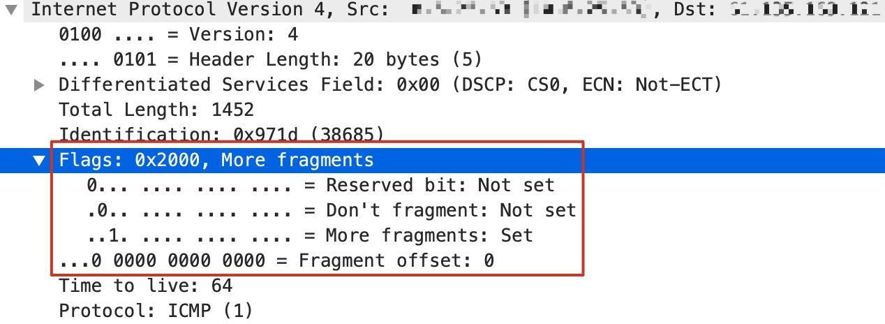 在Wireshark里,我们可以清楚地看到IP报文的这几个标志位: