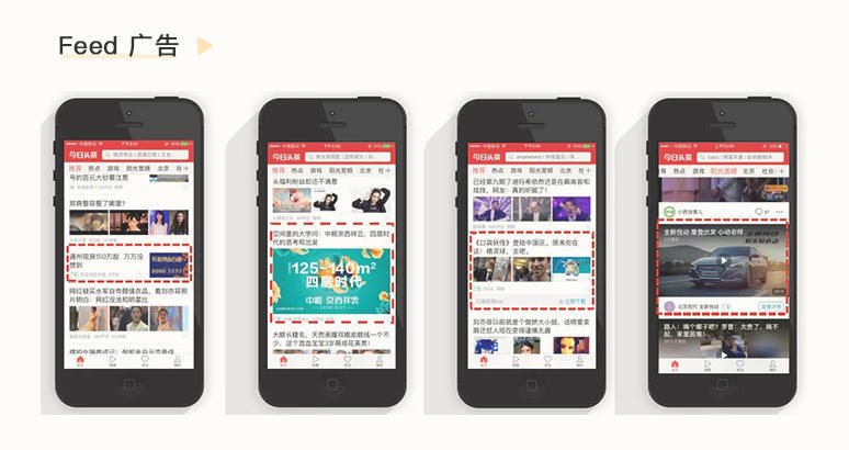 2019年张一鸣在员工大会回忆当初13年做今日头条,那时候虽然大家对于广告有很强的信心,但也都不知道该怎么做。直到大家看到了Feed广告的产品形态,基于今日头条App试点了第一单Feed广告后,有了一定效果,再到2014年Facebook广告收入占比超过50%以后,开始意识到并坚定地认为Feed广告是移动广告未来的趋势。