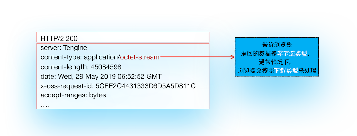 需要注意的是,如果服务器配置Content-Type不正确,比如将text/html类型配置成application/octet-stream类型,那么浏览器可能会曲解文件内容,比如会将一个本来是用来展示的页面,变成了一个下载文件。