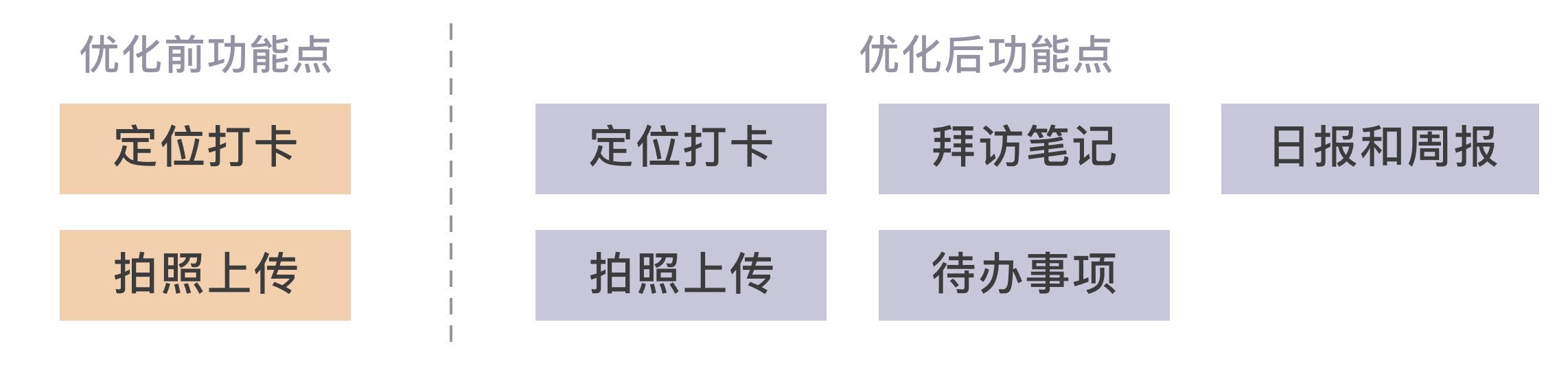 接下来,我来给你具体地拆解一个客户拜访功能的优化例子,讲一下整个升级优化中的设计思路,希望能给你带来更多的启发。