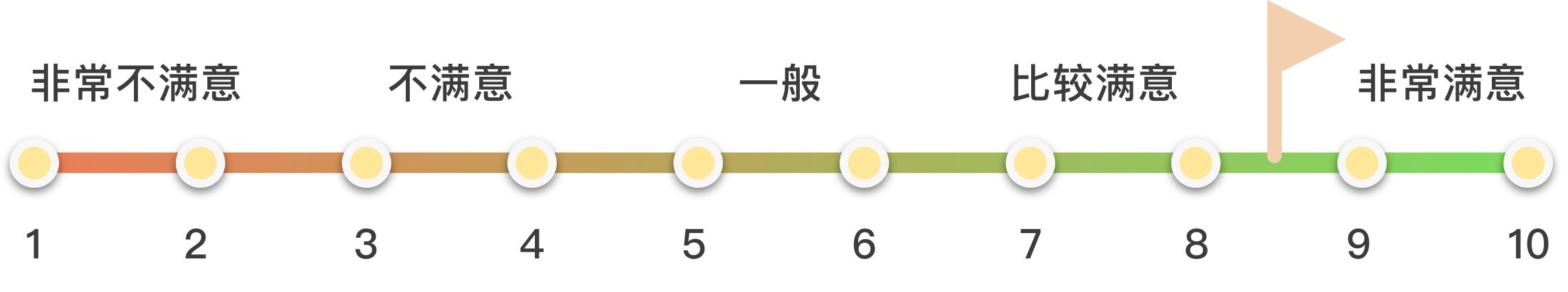 我们筛选了350名用户做了问卷推送,回收的有效问卷大概是300份左右。通过对这300份问卷的评分计算,我们得出了App1.0版本的满意度是8.5分,对应的等级是非常满意。