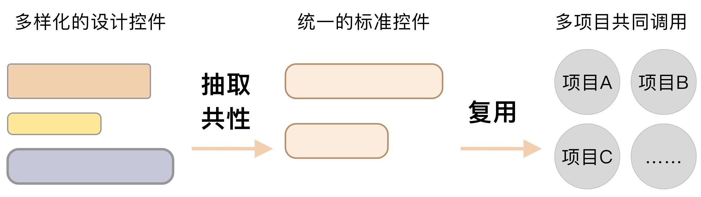 但是,如果我们把这套组件库改造一下,让它变得可以被其他项目复用。我们再结合其他项目的一些调用反馈,持续地进行迭代升级,那我们就可以称之为设计中台。
