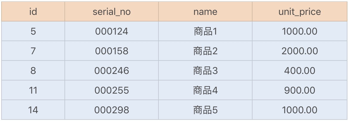 首先创建一张商品表,如下: