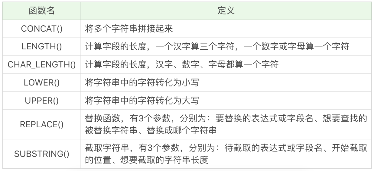 函数是对提取出来的数据进行操作,那么数据表中字段类型的定义有哪几种呢?