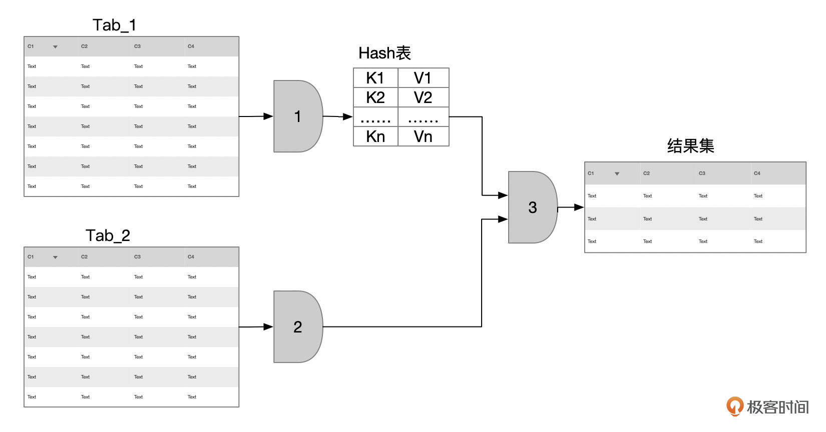 - 使用从Tab_2中获取到的记录,到步骤1构建的哈希表中匹配数据。