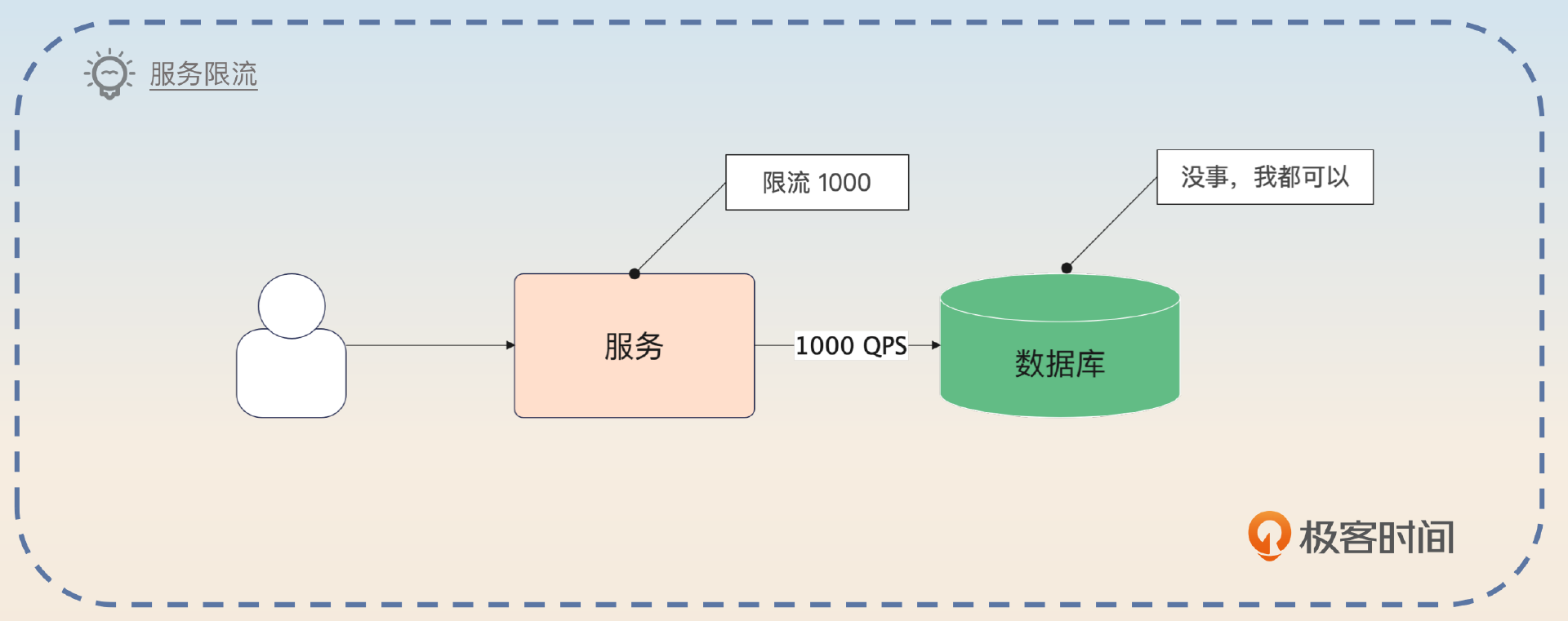 而在服务层面上限流,是有一个隐含假设的,你可以强调一下这个假设,就是数据库撑得住。