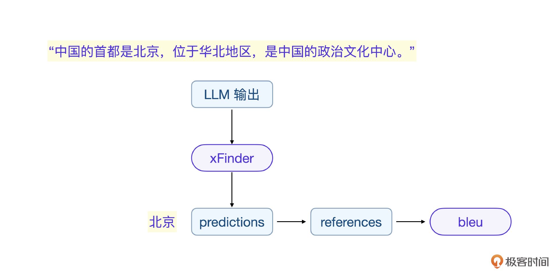 由于大模型输出的随机性,一般很难和答案完全一致,因此在评估算之前,一般会对LLM输出答案做关键信息抽取。
