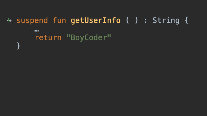 在IntelliJ当中,挂起函数会有一个特殊的箭头标记,这样就便于我们分辨出当前调用的函数是否是普通函数。调用挂起函数的位置,我们叫做是挂起点。