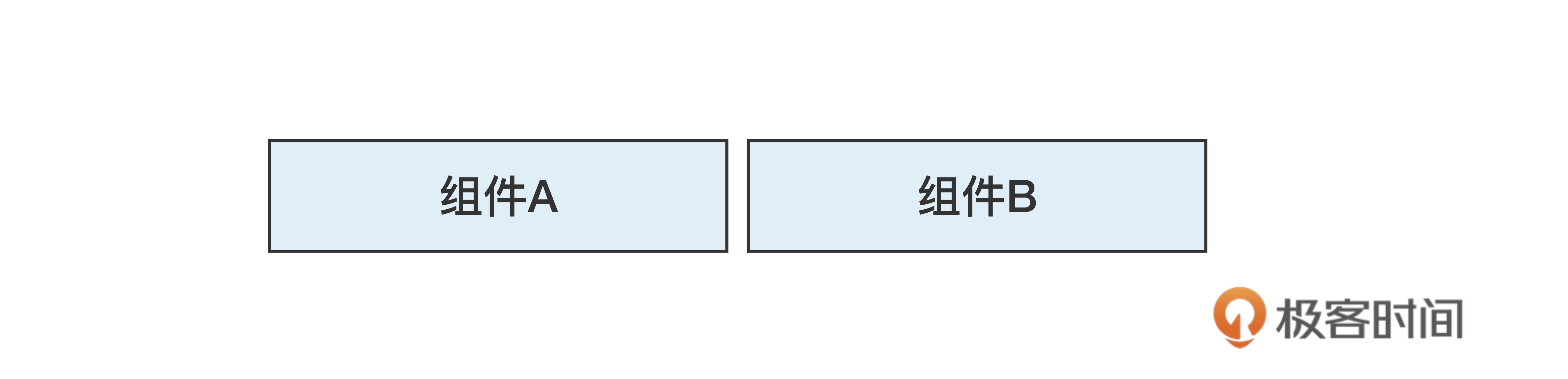 那么在实际运行时我们希望是什么样的结果呢?很容易想到的合理结果是,浏览器会将宽度先分配给组件A,然后将剩余的宽度全部分配给组件B。注意,组件A该多大就多大,而组件B在实际运行时有可能比上图看上去更大或者更小,甚至被完全压扁,这完全取决于浏览器的实际宽度。当有多个固定尺寸的组件和一个有弹性的组件在一行上,处理方式等价于这个情况。