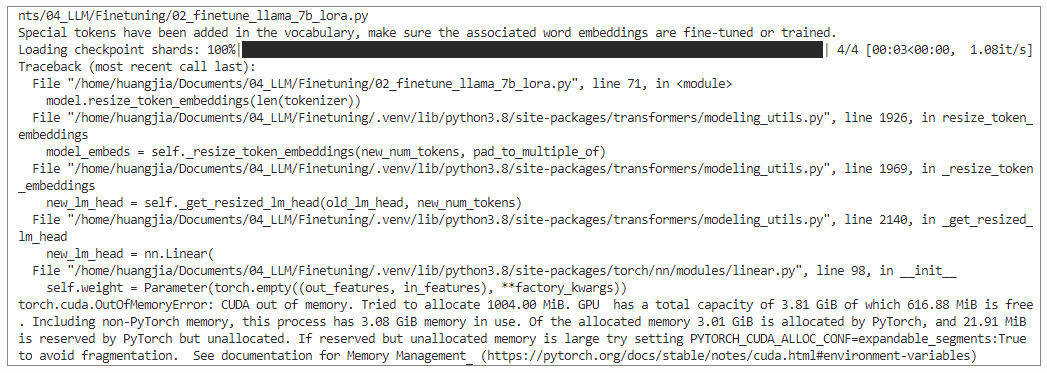 不过,这里我需要说明一下,在这个示例中我们所做的QLoRA量化,仅仅是针对于LoRA增量矩阵而进行的,我们其实并没有改变模型原始权重矩阵的参数精度。如果你希望压缩整个模型,那么你需要使用PyTorch的quantize_dynamic包对模型做整体的量化。