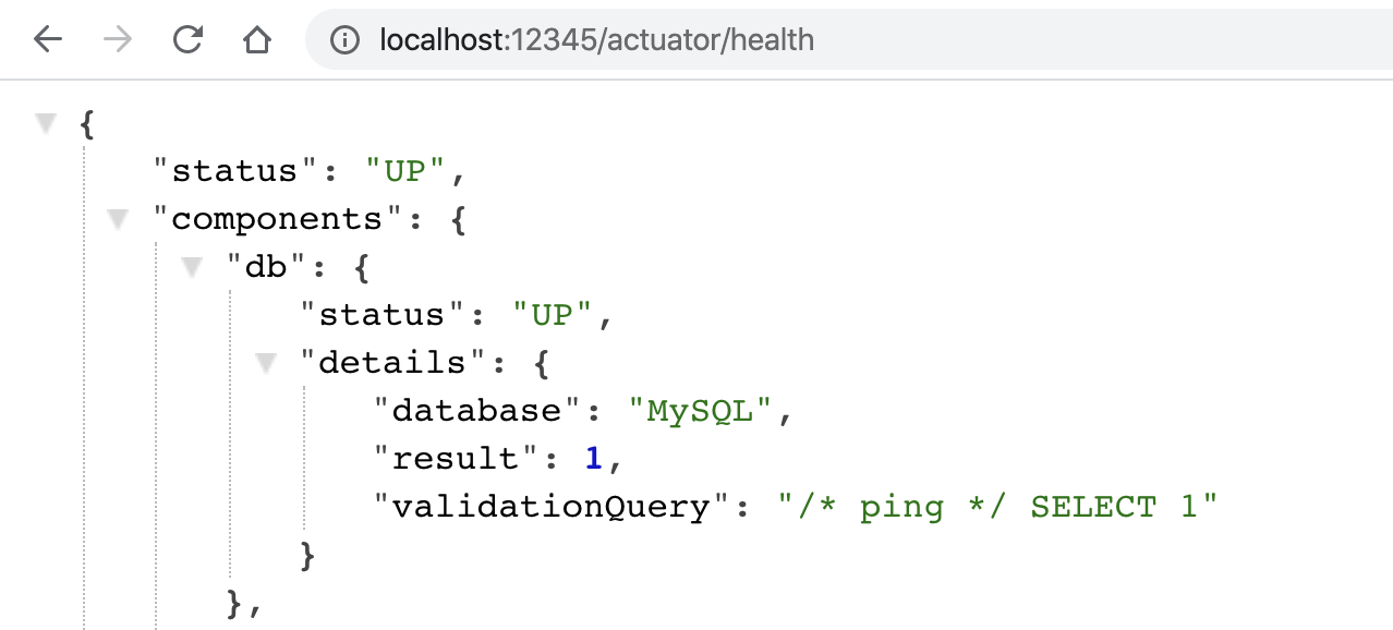 问题就是出在这里。MANAGEMENT_SERVER_PORT覆盖了配置文件中的management.server.port,修改了应用程序本身的端口。当然,监控系统也就无法通过老的管理端口访问到应用的health端口了。如下图所示,actuator的端口号变成了12345: